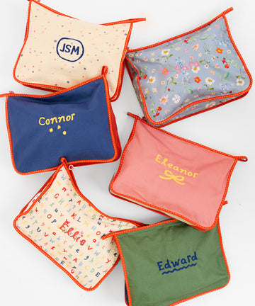 Gorgeous grosgrain ribbon ties our signature print twill bags up with a bow. Fits up to 4 child items or 5 baby items.