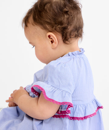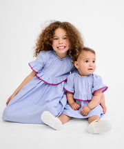Polished and playful, the Diana Dress is the perfect everyday dress for school, playdates, and family gatherings. Designed with an elastic neckline that makes it extra easy to throw and go. Red crochet lace edge adds a delicate pop.