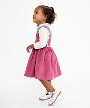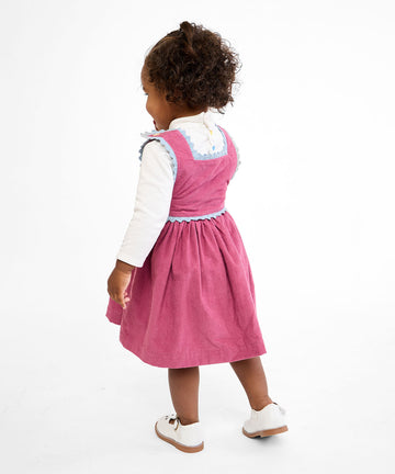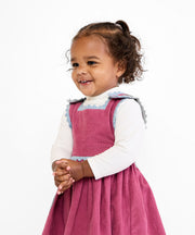 Ready for adventure! The Dorothy Dress is crafted from soft micro corduroy, with clever growable buttons so the dress can adjust as your child grows. A sweet crochet trim adds the perfect pop, while elastic sides keep things comfy and flexible for play dates and recess. Layer with a long sleeve tee as the weather cools.