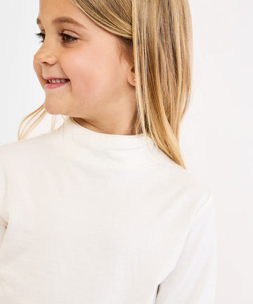 A cozy and classic turtleneck cut from our signature Float Jersey™—our soft, breathable jersey made from 100% organic cotton. Designed with a timeless, abbreviated turtleneck collar, it’s great on its own or layered under overalls, dresses, sweaters, and more. An essential for back-to-school and beyond.