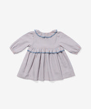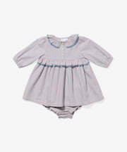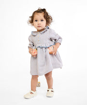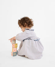 The Hannah Dress is as sweet as can be. Inspired by a childhood wallpaper founder Claire grew up with and designed with alternating stripes, the dress has a timeless silhouette with a ruffled collar and delicate lace trim detailing. Made with comfy elastic arms and easy-to-use buttons placed at the front, it’s perfect for holidays and everyday photo ops.