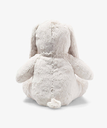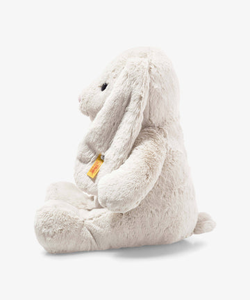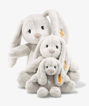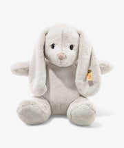 Meet Hoppie Rabbit, the perfect addition to any child's Easter basket. Measuring 7 inches tall, this little bunny has a cute pink nose and extra-long floppy ears. The small beanbags in their bottom, paws and soles allow them to sit in an upright position. Their trademark Steiff "Button in ear" symbolizes the highest standard of quality and safety.