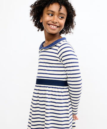Our first ever long sleeved jersey dress (inspired by the summer favorite Mirren Dress), is made from our bestselling Float Jersey™. With piping at the neck and hemline for extra style, it's comfortable enough to climb tress in and cute enough for school days.