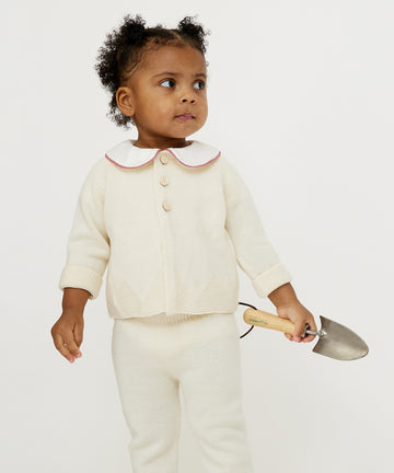 Made of our exclusive merino wool-cotton blend, this diamond-knit cardigan features three stacked buttons to make it easy to put on and take off. The snuggle-soft fabric was custom made to keep your little one at a just-right temperature year round. Designed to last longer with a grow-with-them cuffed hem and preshrunk to retain its shape.