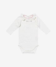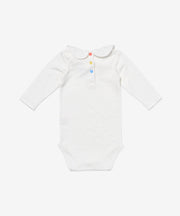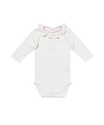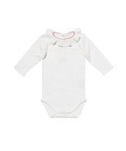 Simple is often sweetest. This one-piece features a soft ruffled neckline complete with piping at the collar. Made from our signature Float Jersey™, a soft and silky organic cotton knit to keep your baby cozy all day long. Thoughtfully finished with snaps for easy changes.