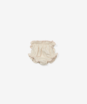 We sized up to make the dress last longer. It is so soft and easy to take on and off for meals and naps. The bloomers are also beautifully crafted and perfect for lounging around the house on a hot day!